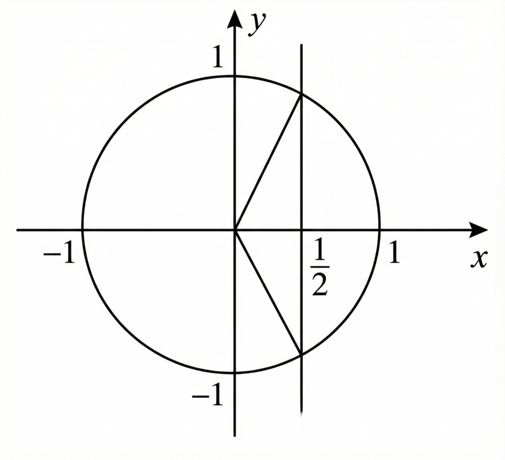 (2)定義から単位円上で $x$ 座標が $\frac{1}{2}$ になるような点を考えればよい。