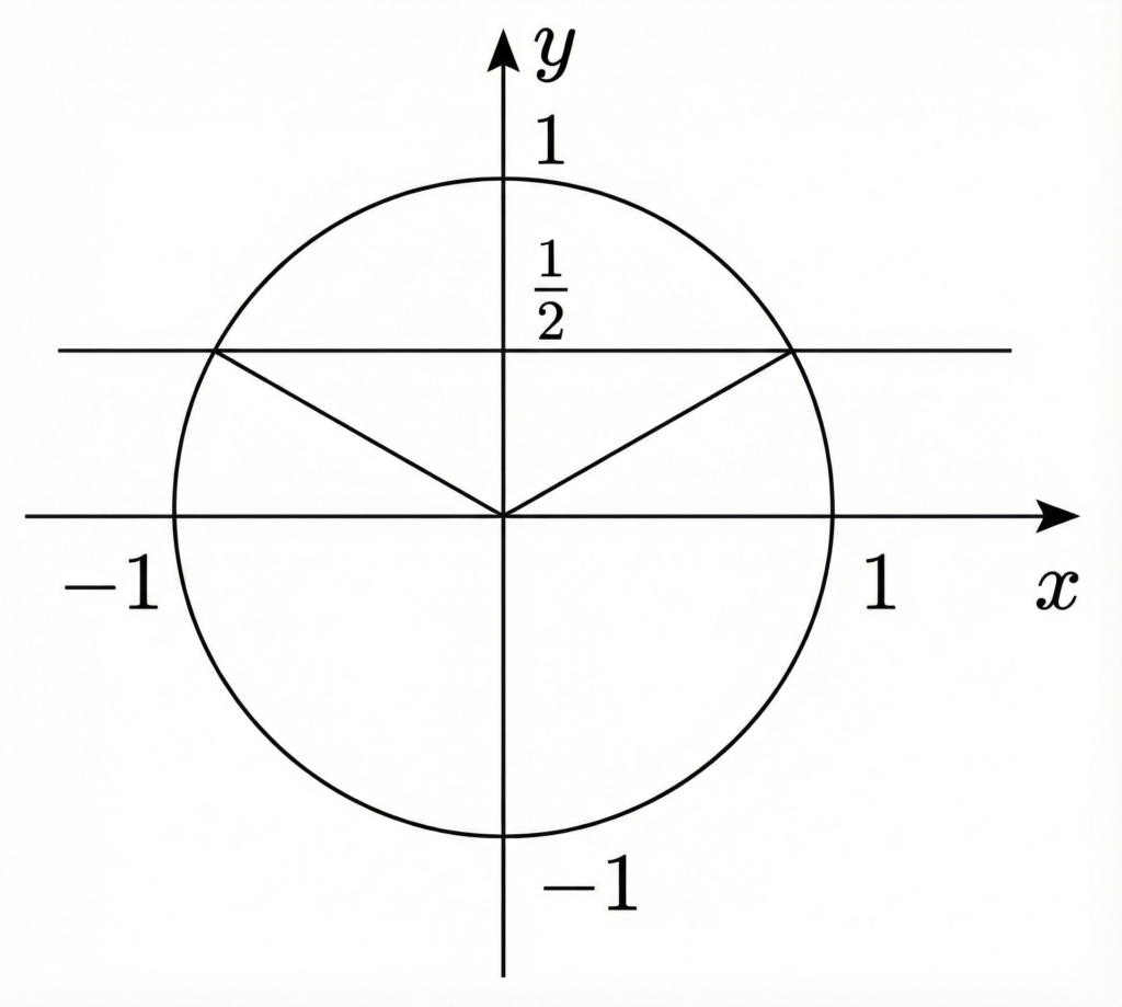 (1)定義から、単位円上で $y$ 座標が $\frac{1}{2}$ になるような点を考えればいい。