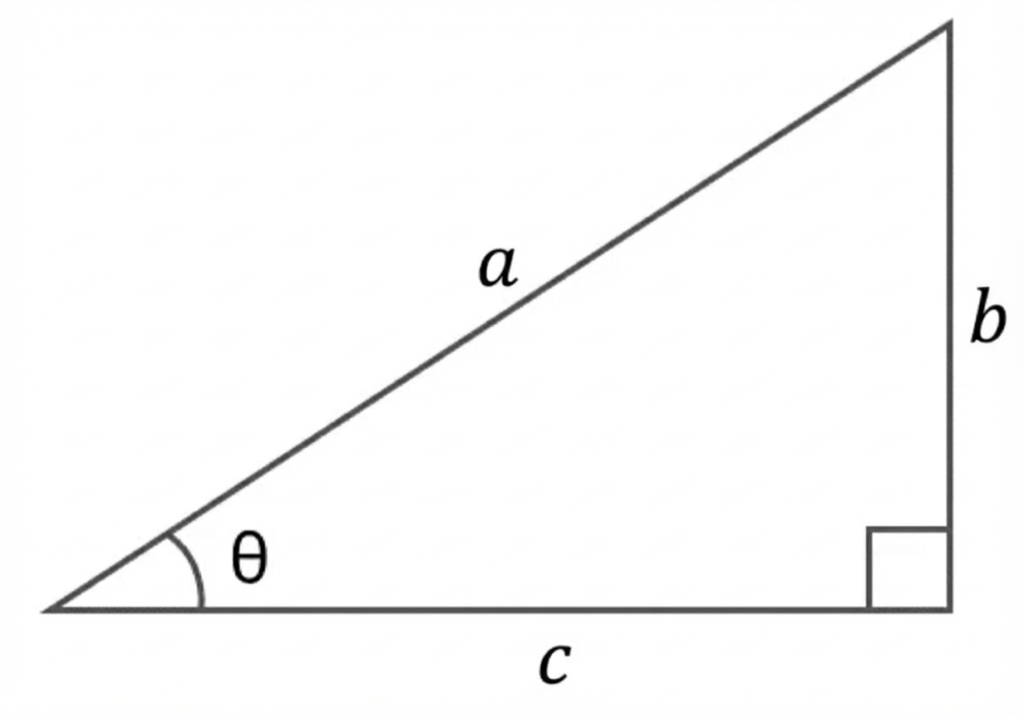 $ \sin \theta = \frac{b}{a} $ , $ \cos \theta =\frac{c}{a} $ , $ \tan \theta = \frac{b}{c} $